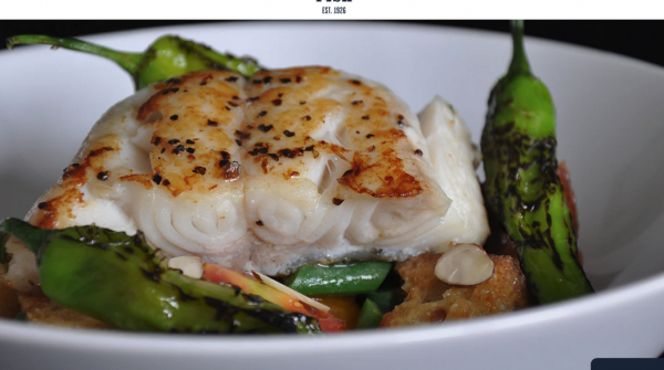 lay your salad down on the plate and sprinkle a pinch of almonds on the top, lay a piece of lingcod across the top, and arrange your shishitos decoratively around the fish.