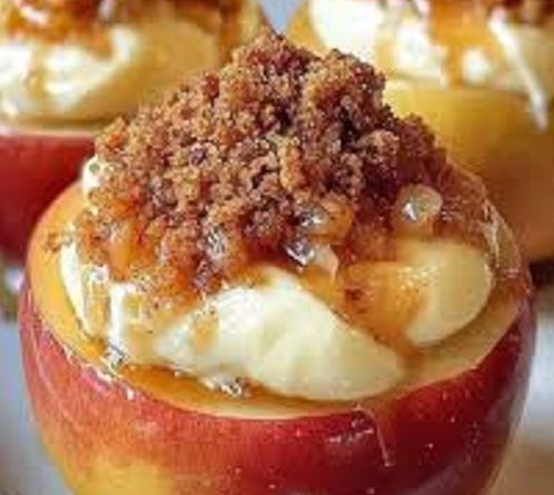 Mound the stuffing on top of the apples. This stuffing should fill 6 halves mounded high or 8 if you want to fill less. I like them really full.