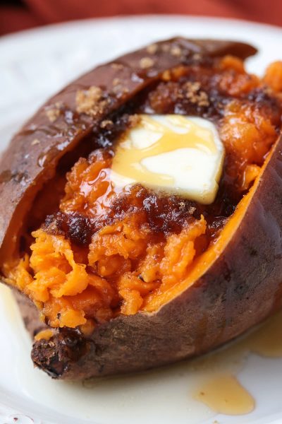 Slice open and serve with a little bit of butter and sprinkled brown sugar and cinnamon.